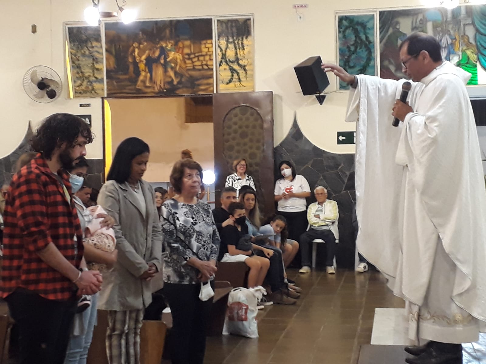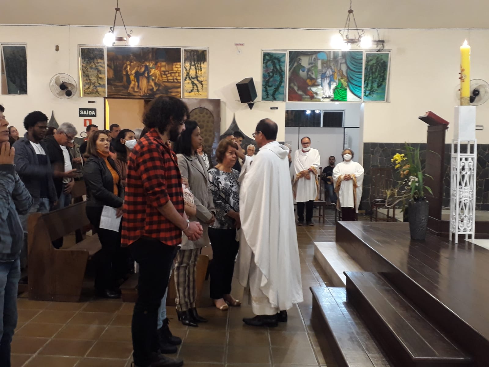 No final da celebração, o Pe. Paixão foi portador de um trecho da mensagem do Papa Francisco pelo Dia Mundial das Comunicações Sociais, celebrado nessa data, aproveitando o momento para destacar a importância da Pastoral da Comunicação. “Brilhou” na benção de envio dos colaboradores da PASCOM (Pastoral da Comunicação) de nossa Paróquia, que estavam presentes na celebração, e no convite à outras pessoas que se sintam em sintonia com esse trabalho e desejam fazer parte dele para somar e auxiliar a Igreja em sua importante e complexa missão de manter-se em permanente diálogo com as comunidades e com a sociedade.