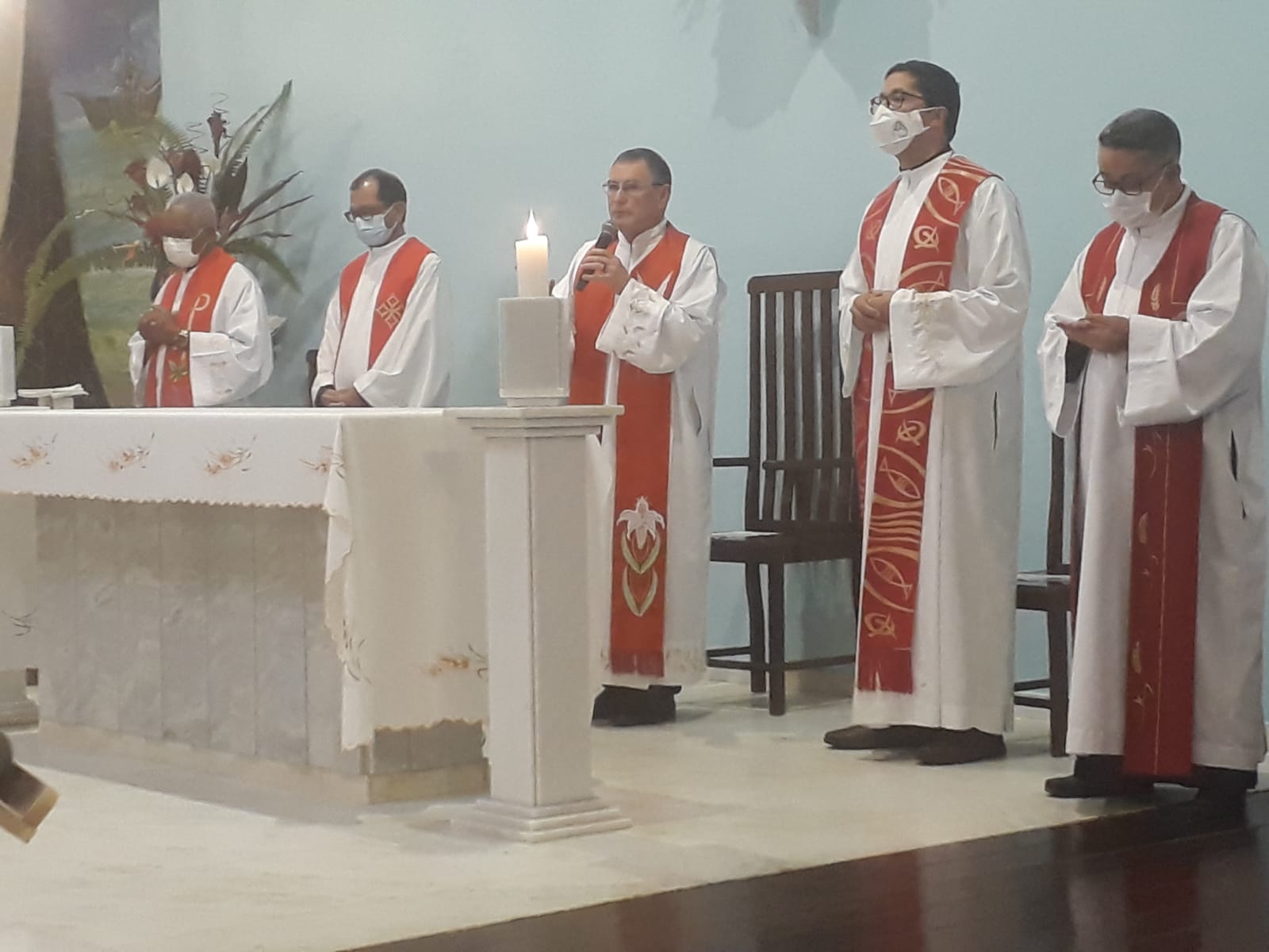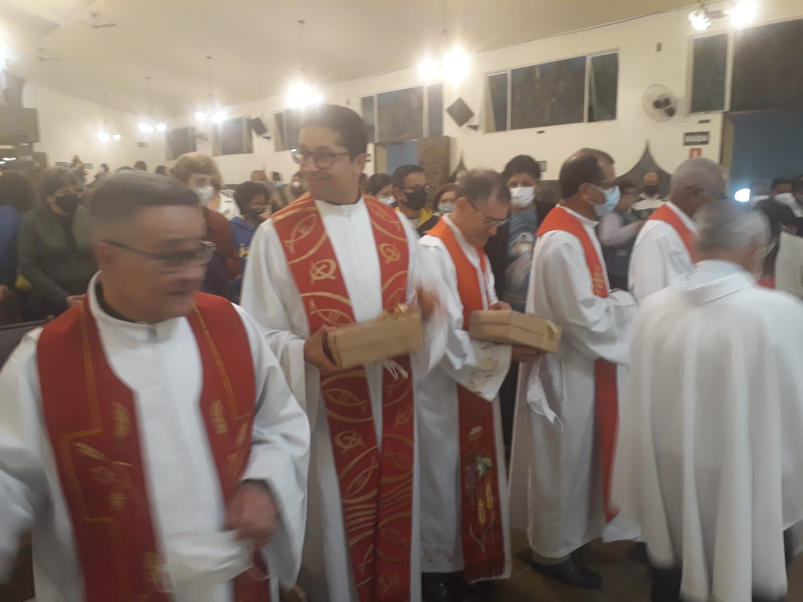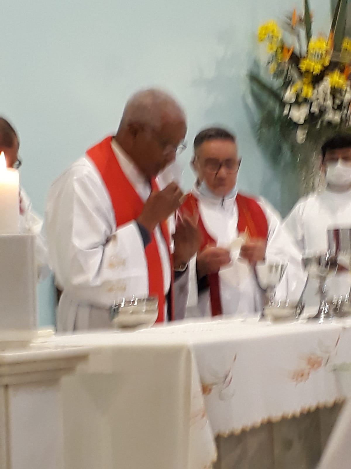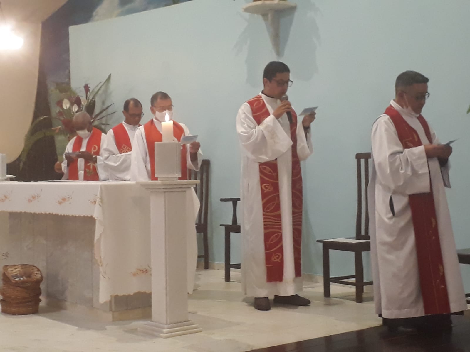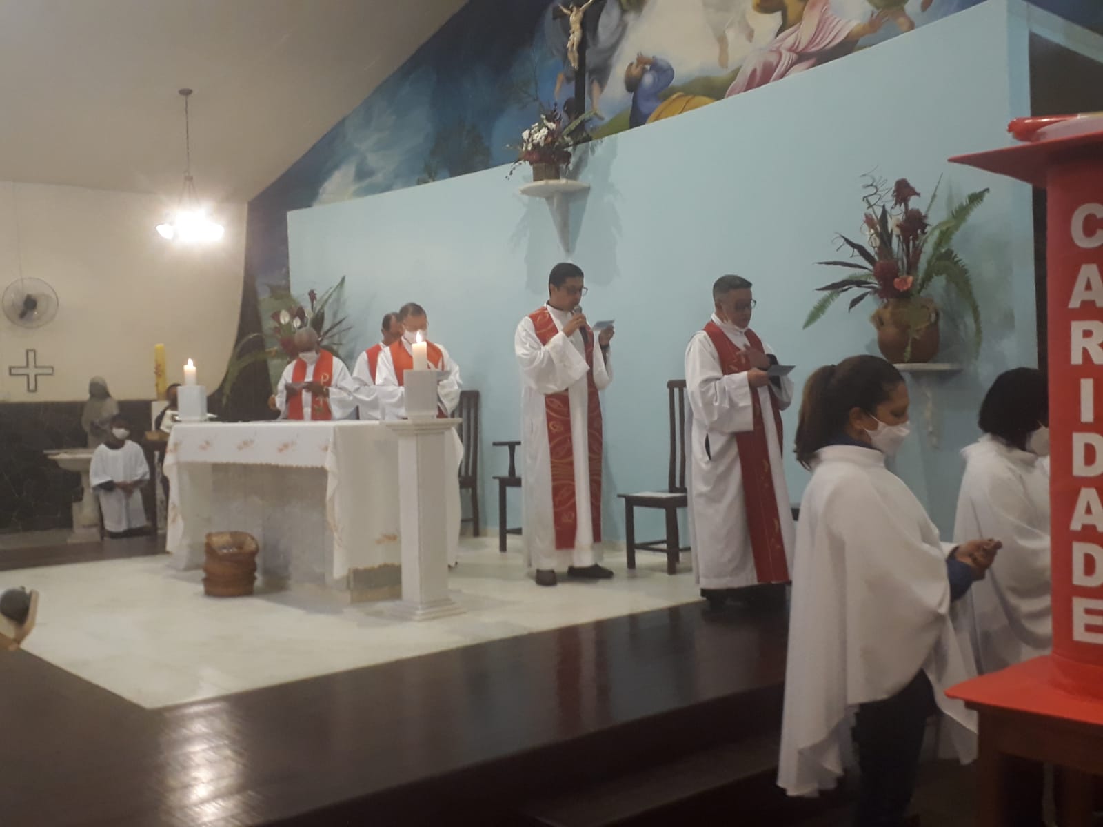 Na sexta-feira, 1º de julho, tivemos o oitavo dia da Novena em honra ao nosso padroeiro São Pedro. Com alegria, esperávamos o Pe. José Raimundo para presidir a nossa celebração e essa alegria foi dobrada com a presença surpresa do Pe. Bruno que veio concelebrar com ele. A estes queridos sacerdotes, nosso sincero agradecimento pela presença e pela espiritualidade partilhada conosco.