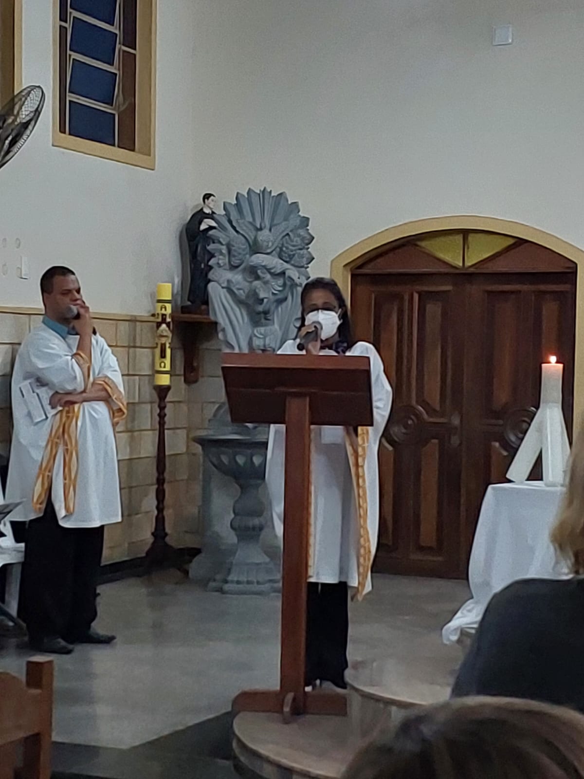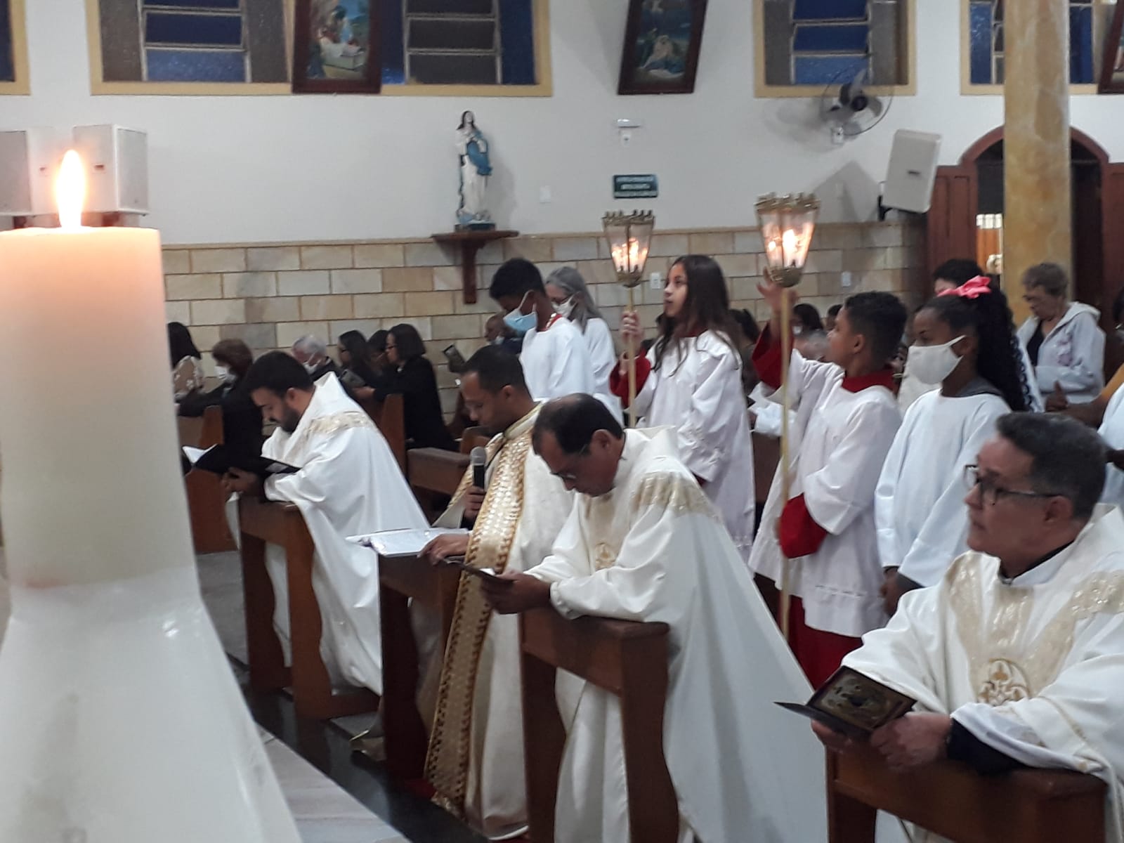 Após uma recepção calorosa e fraterna, por parte do Pároco, Diácono e dos agentes de pastorais, participamos de uma celebração ILUMINADA. Vale ressaltar que a reflexão do Evangelho de São Mateus, feita com muita propriedade pelo Pe. Luiz Paixão, presidente da celebração, nos lembrou o nosso compromisso de verdadeiros CRISTÃOS: “Ser sal da terra e luz do mundo”.
