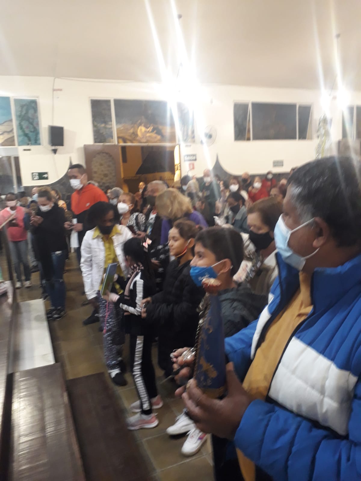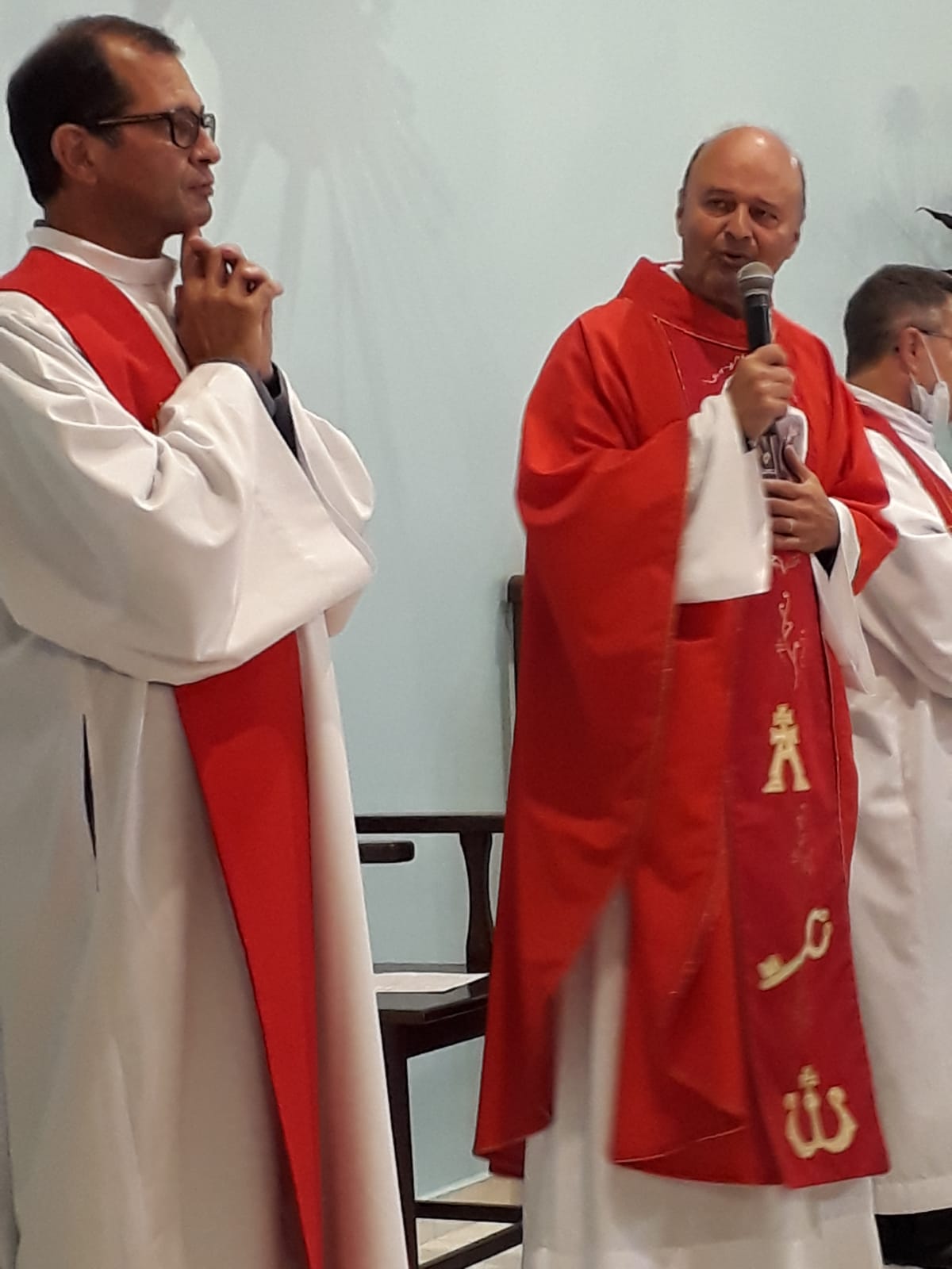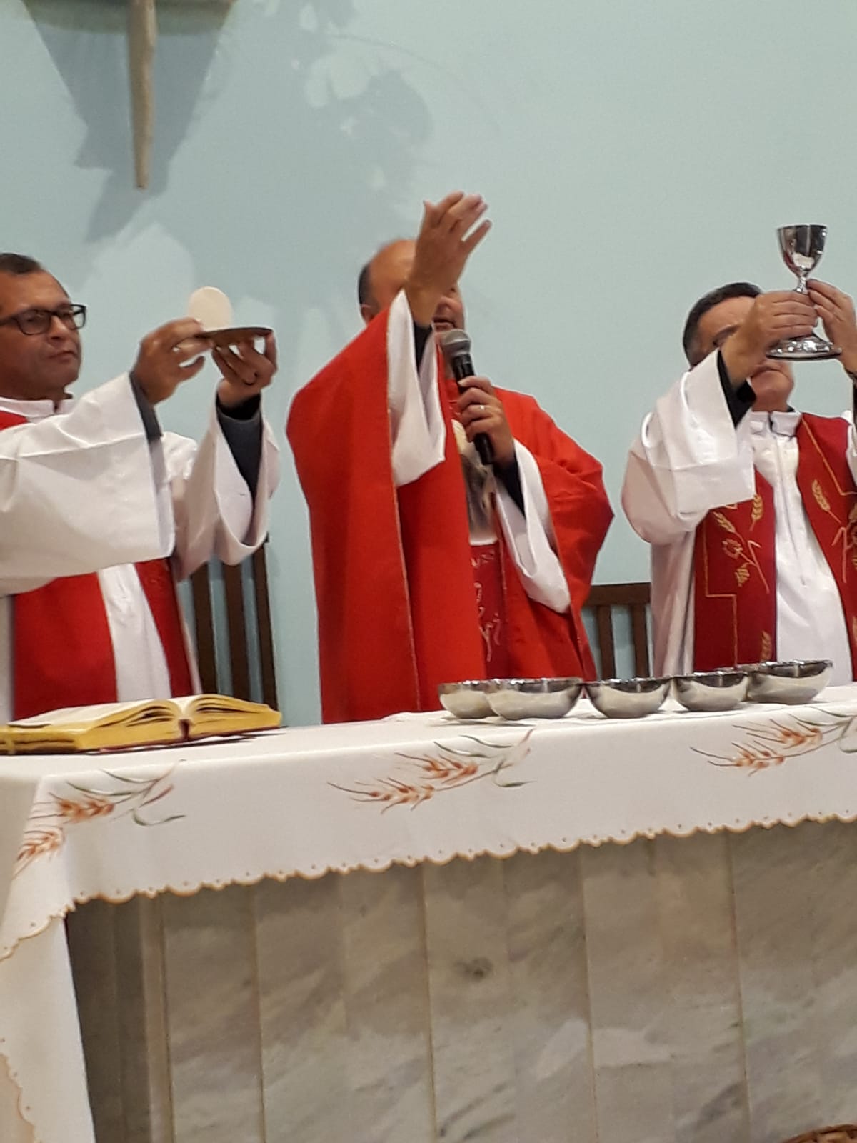 Quantos Padroeiros vieram hoje para fazer companhia à São Pedro! Sejam bem vindos: Santo Antônio, Nossa Senhora Aparecida, Nossa Senhora da Conceição, São Sebastião e Nossa Senhora das Graças! Ao receber os padroeiros e as comunidades, Pe. Paixão foi um anfitrião perfeito, fraterno e acolhedor: “Sintam-se em casa, a casa é de vocês”, disse ele.