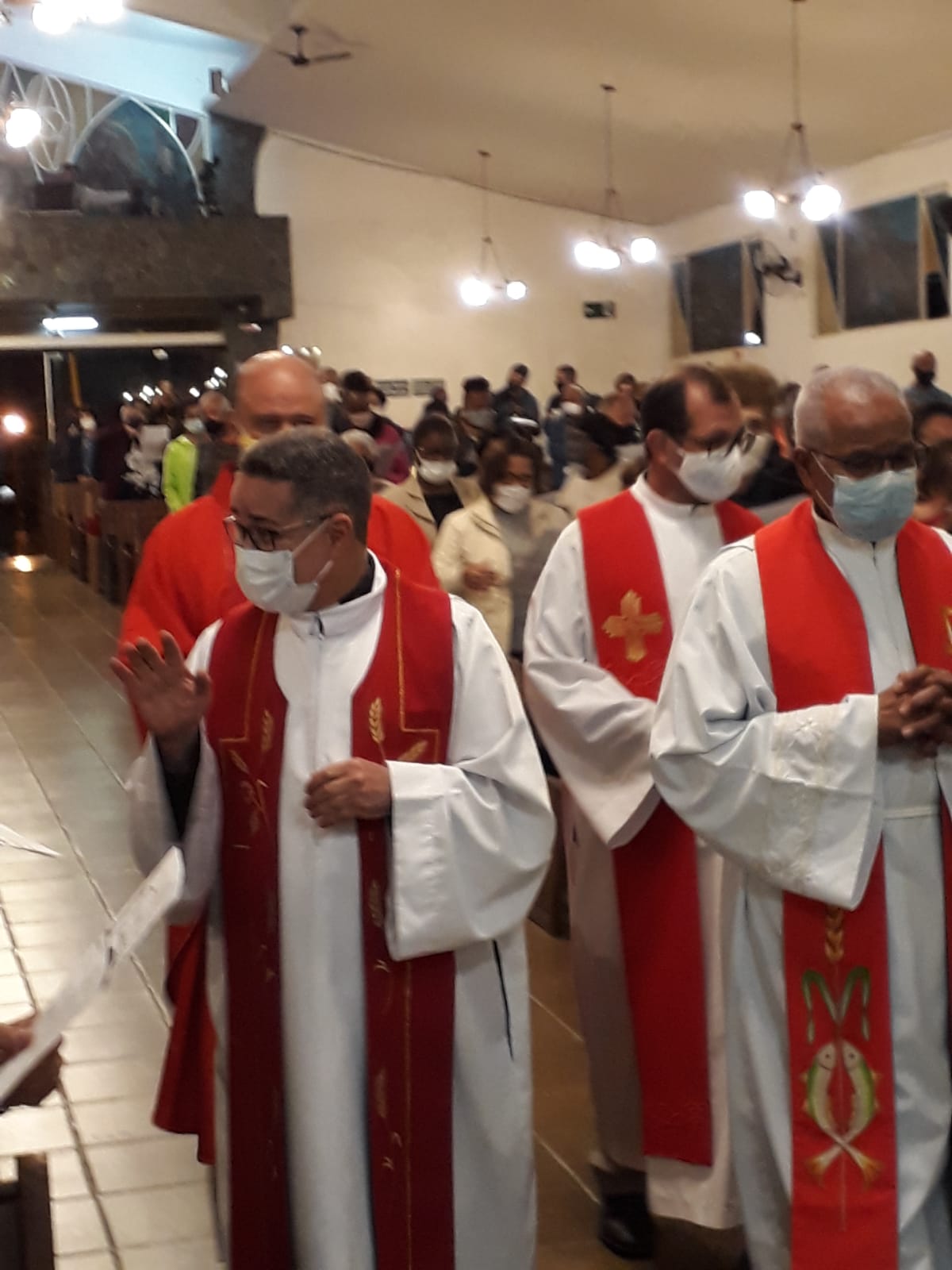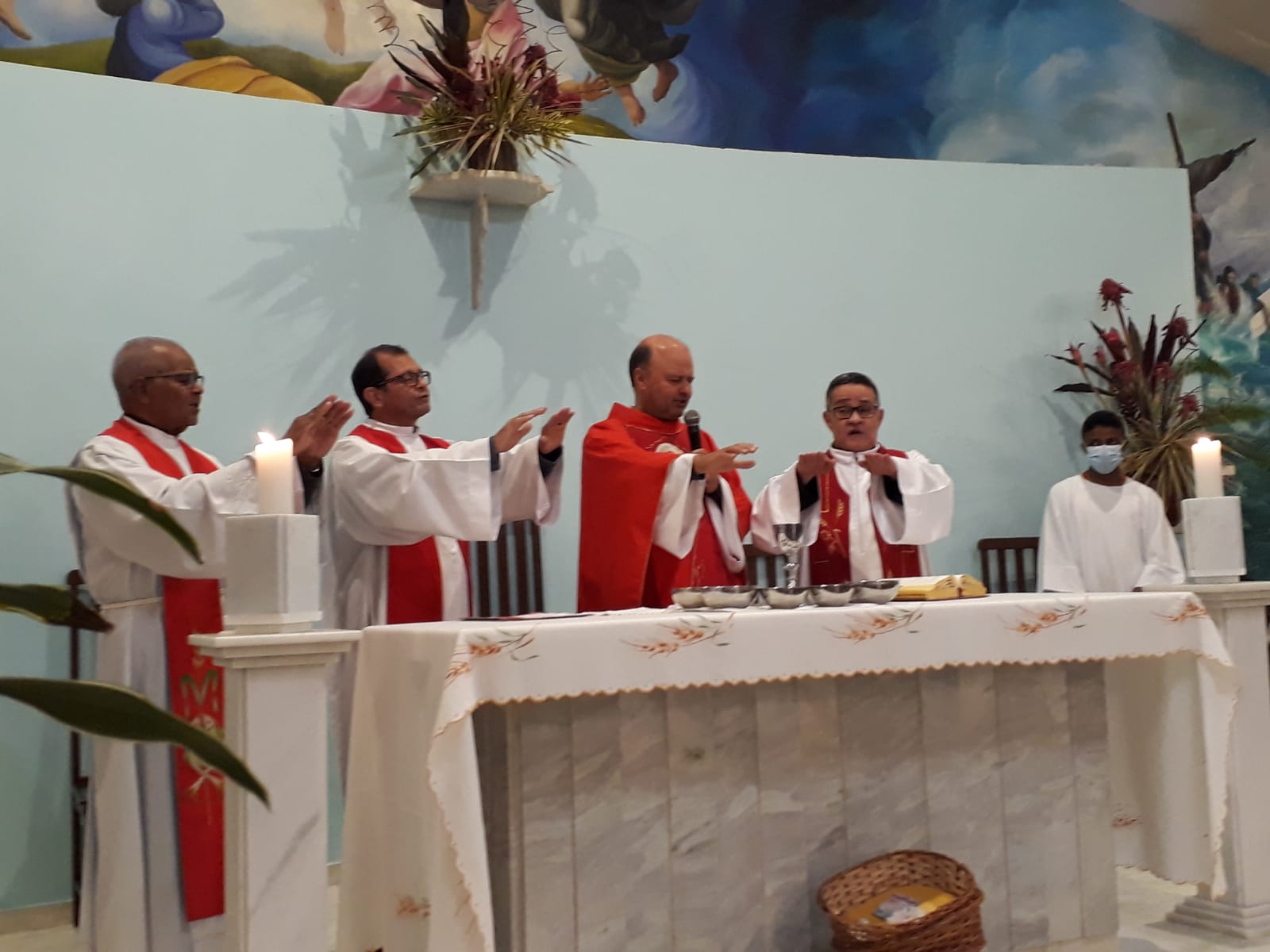 Na terça-feira, 28 de junho, celebramos o quinto dia da nossa Novena em honra ao nosso padroeiro. Neste dia, contamos com o Setor Dom Helder Câmara na preparação e condução da celebração que foi presidida pelo Pe. Francisco Moreira, a quem agradecemos com muito carinho a disponibilidade de participar conosco da novena. E São Pedro, sempre dividindo as comemorações. Hoje a divisão foi com Ricardo, sacristão da paróquia, que celebra mais um ano de vida.