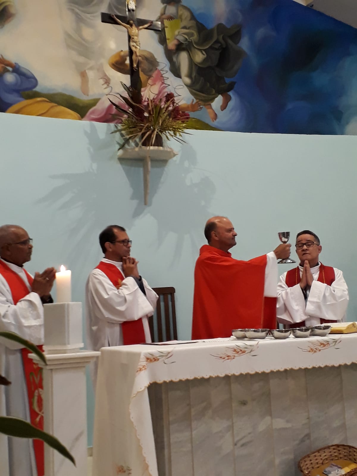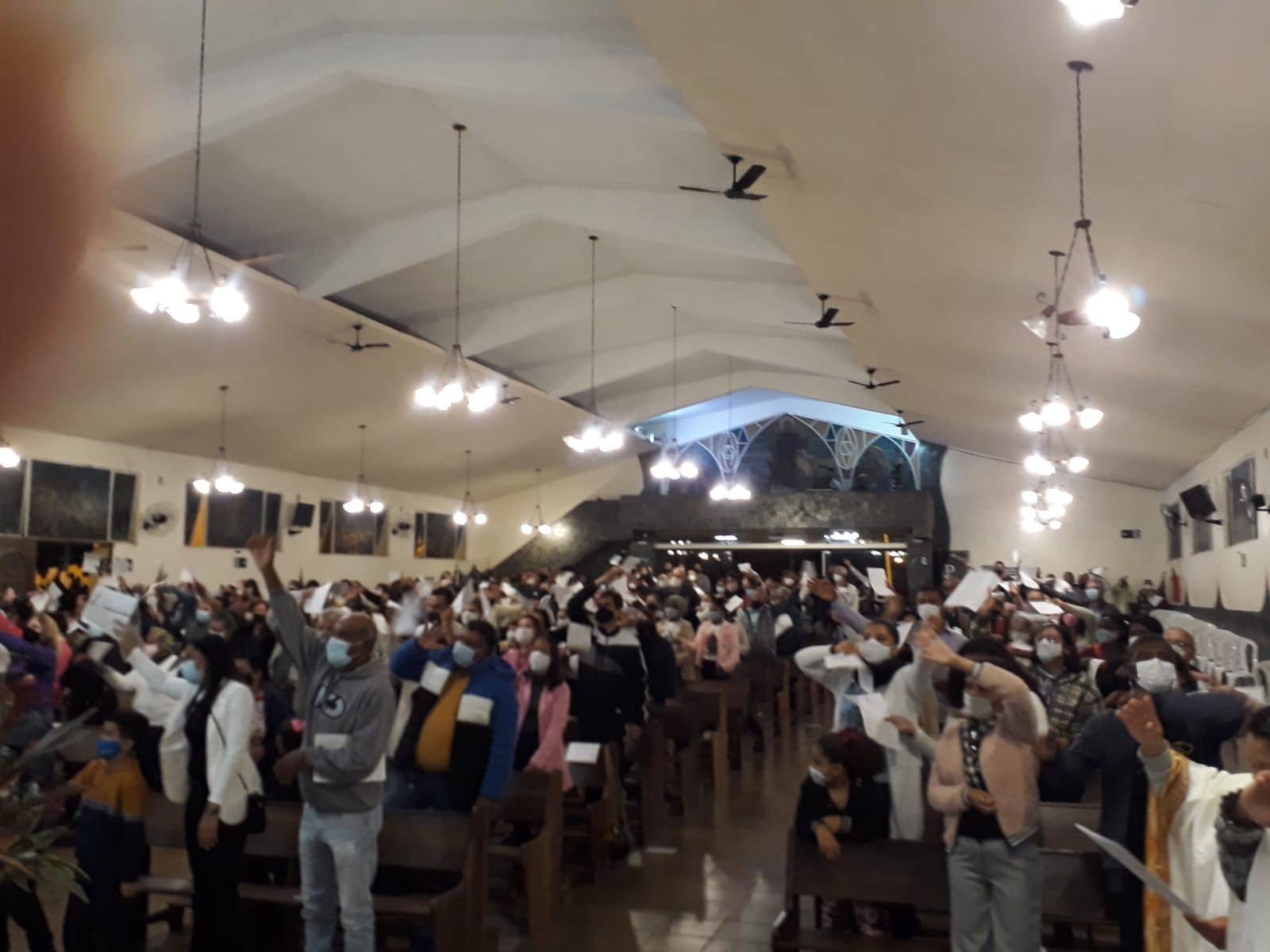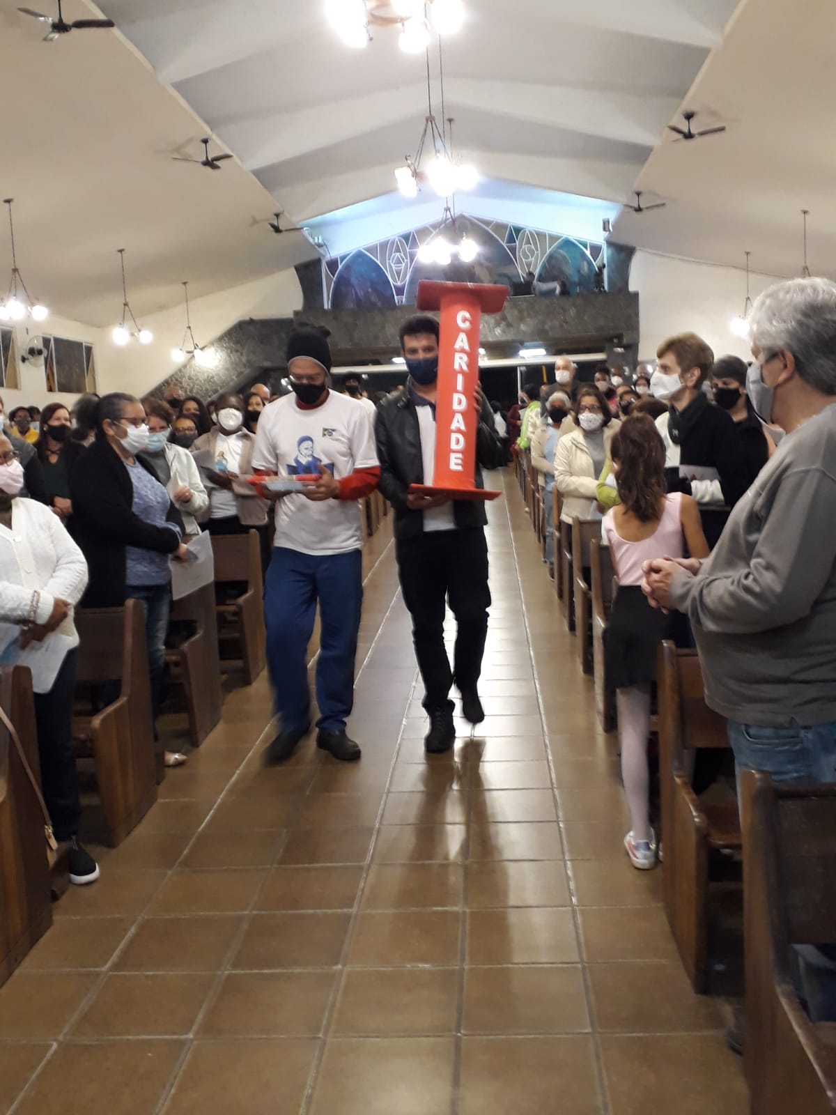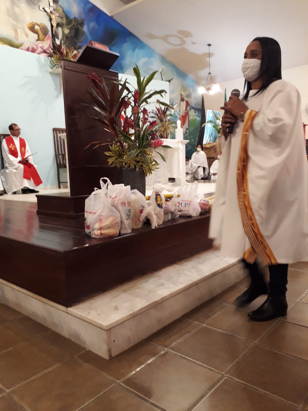 Como resposta o setor disse a que veio. Colaborou grandemente com a nossa construção trazendo o pilar da CARIDADE, e testemunhou essa caridade na hora do ofertório com a oferta de insumos para que a partilha acontecesse após a celebração.