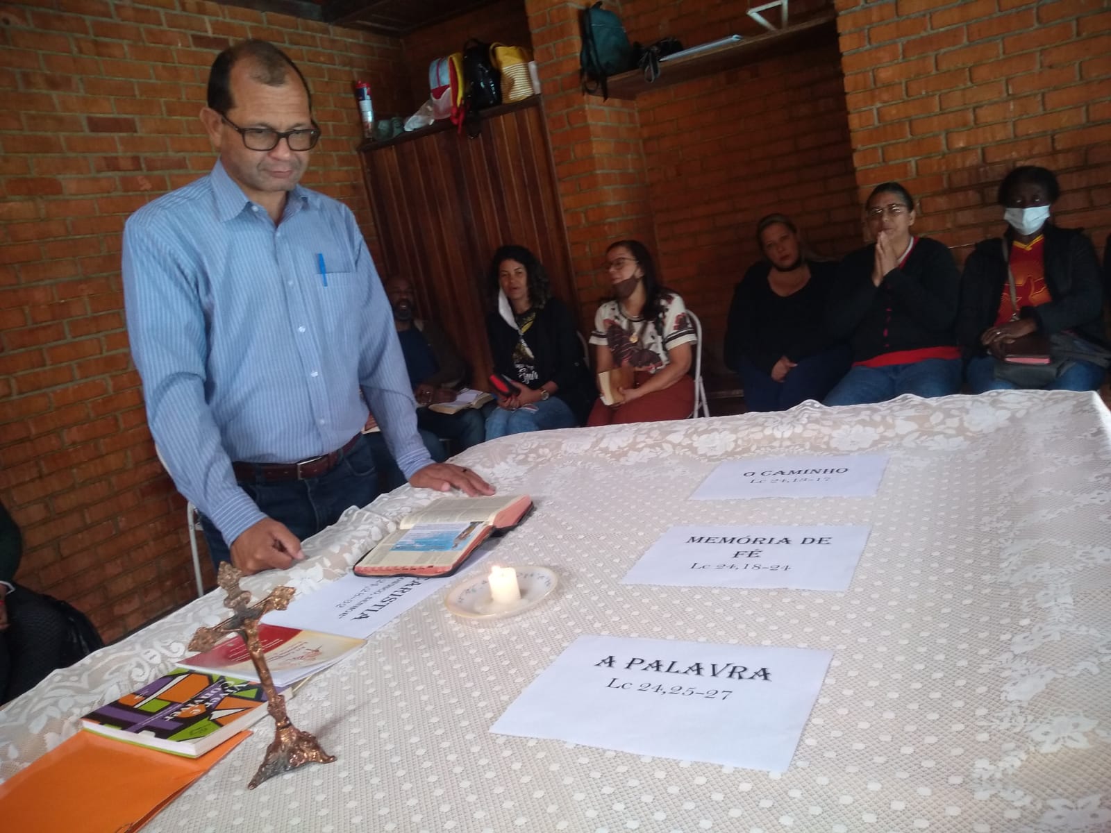 Após este momento, nosso pároco, Padre Paixão, conduziu o Retiro, trazendo, para reflexão e discussão, a passagem do Evangelho de Lucas sobre os discípulos de Emaús (Lc 24,13-35), tendo como chaves de leitura “O caminho”, ”Memória de fé”, “A Palavra”, “Eucaristia” e “Missão”.