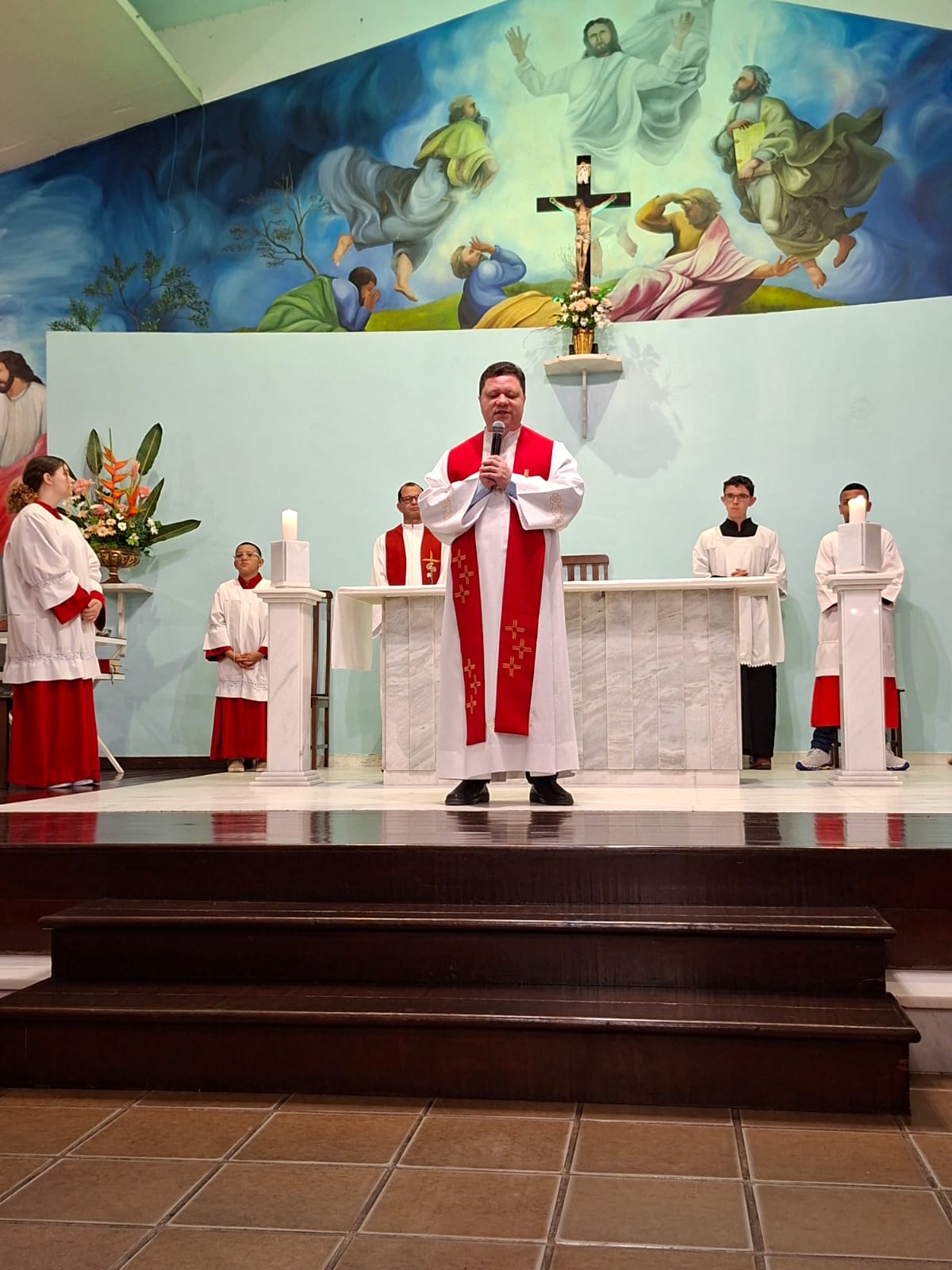 Nesta data, tivemos a graça de acolher a Paróquia Nossa Senhora da Piedade, de Piedade de Ponte Nova, e de celebrar juntamente com o Pe. Edmarcio, que veio partilhar conosco sua palavra, sua espiritualidade e o fervor de sua missão sacerdotal. Sua presença iluminou nosso caminho e fortaleceu a nossa caminhada rumo ao Centenário.